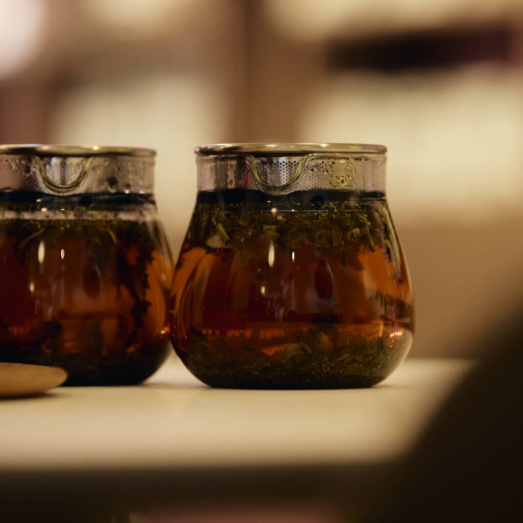 お風呂から上がって、寝る前は「おやすみブレンド」というハーブティーを飲んでいます。オレンジピールやオレンジフラワー、カモミールなど15種類以上のハーブが入っていて、安眠に導いてくれます。入浴自体は長くないんですけど、その後にハーブティーを飲みながらゆったりする時間が好きですね。